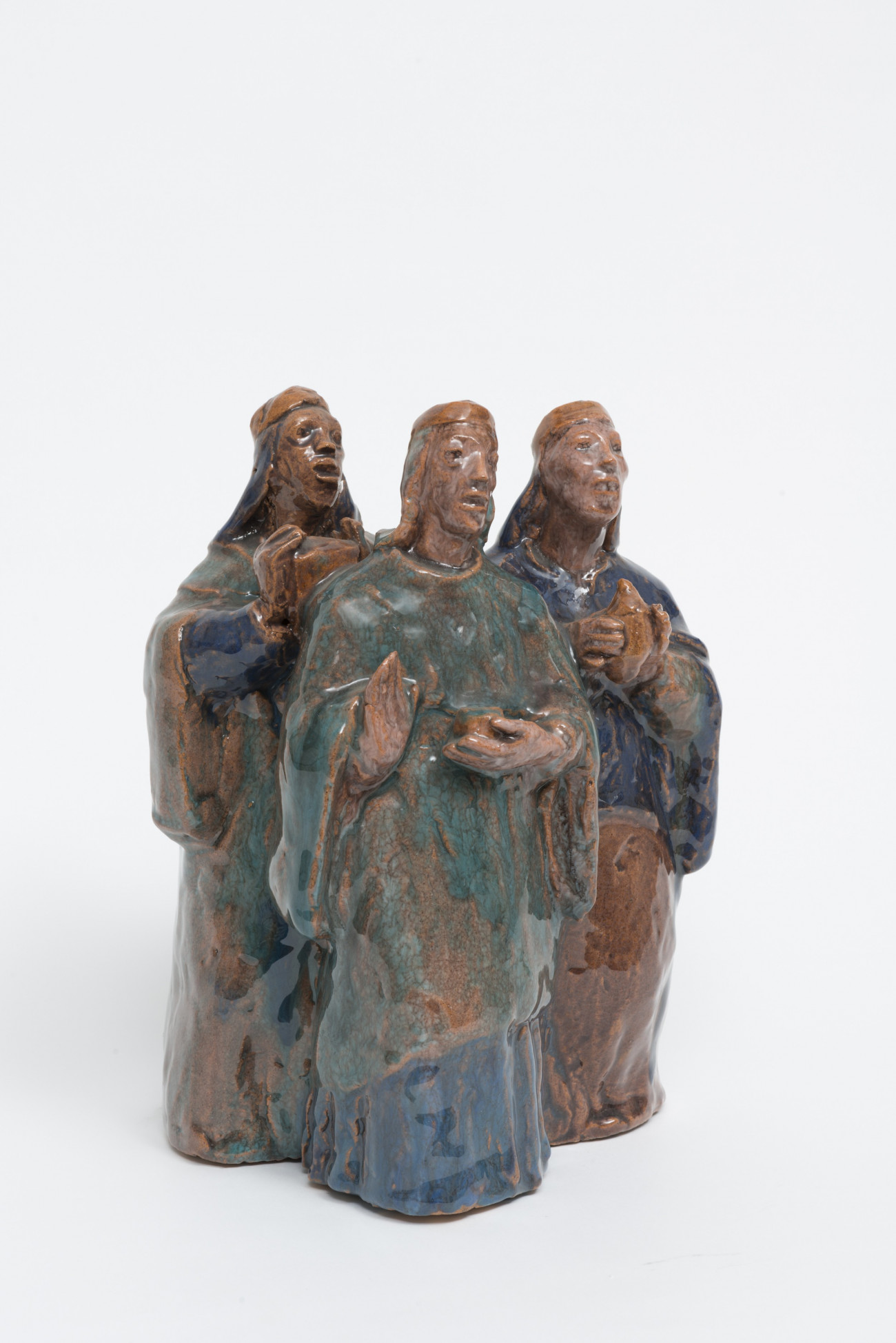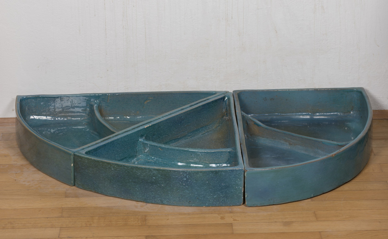 Dreitelige Keramik, als schmaler hoher Streifen übereinanderzustellen